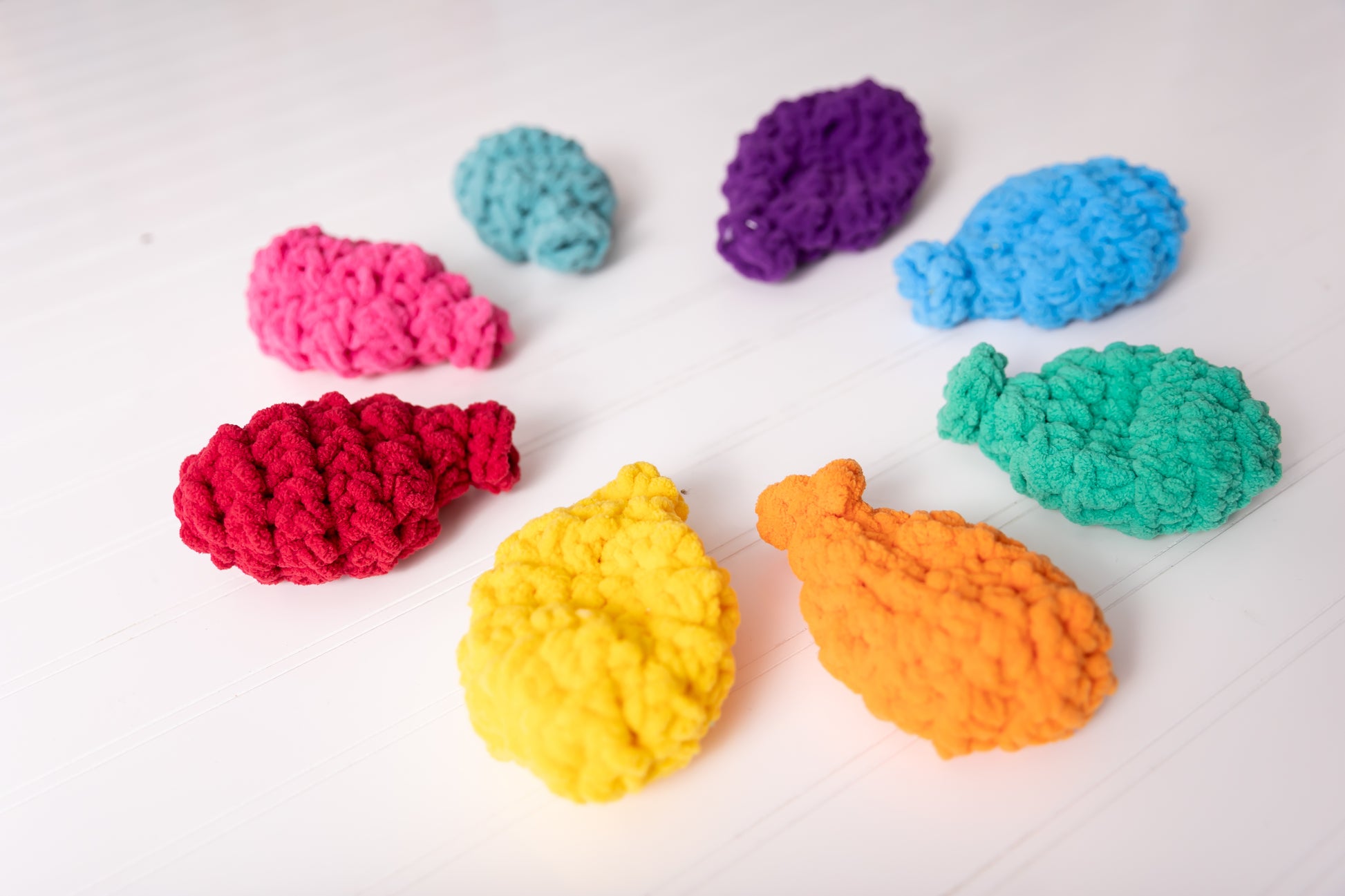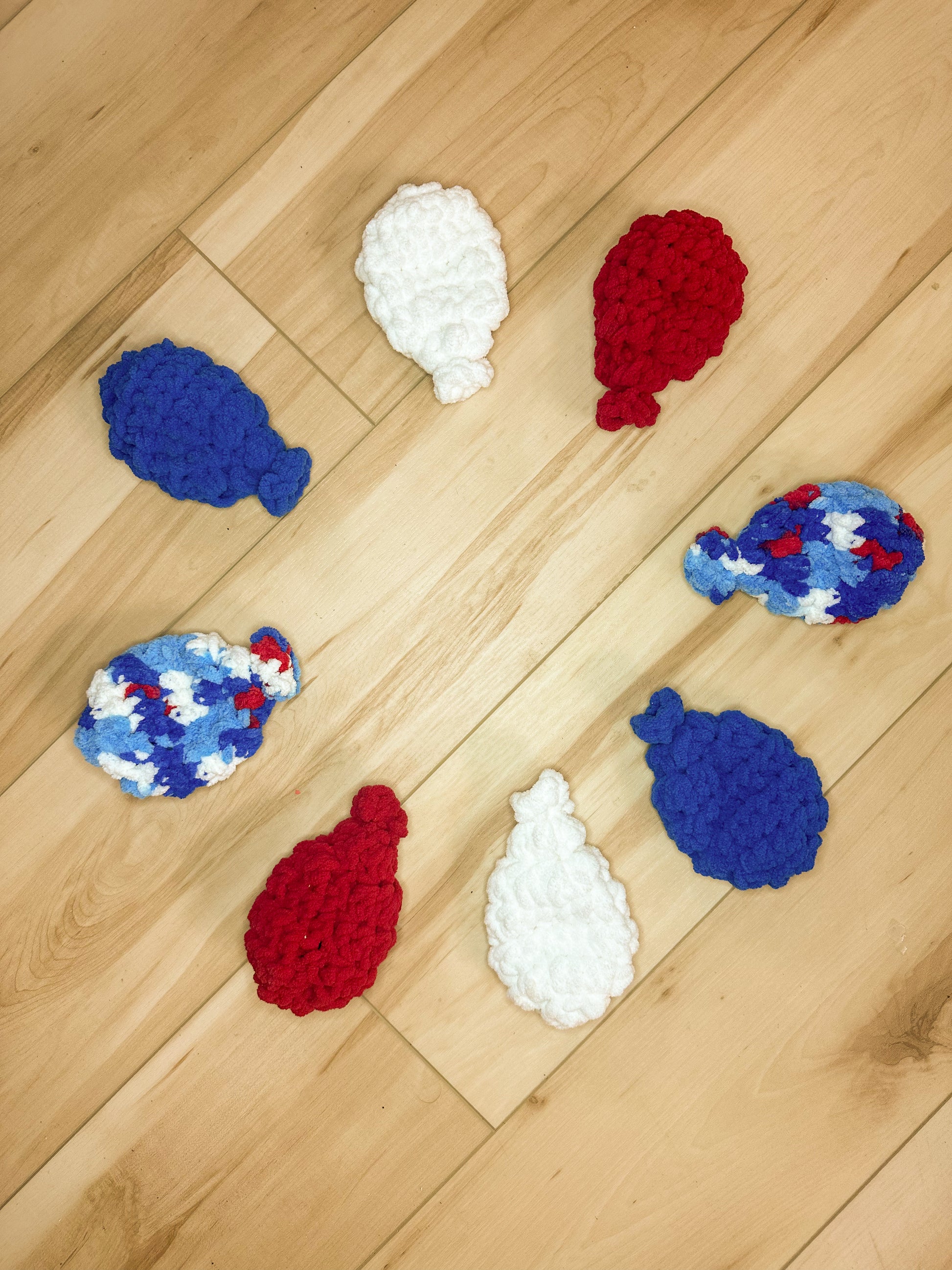 Each balloon is a different color and made with soft, 100% polyester yarn.